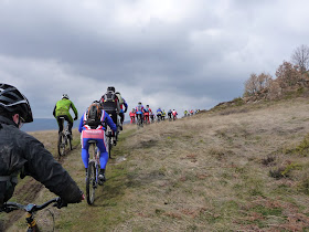 Al llegar arriba, hicimos el segundo reagrupamiento, una parada demasiado larga, el frío comenzaba a hacerse latente.Cuando llegaron los mas rezagados, por averías en su mayor parte pinchazos, continuamos la ruta descendiendo por una pista que se había convertido en un autentico patatal por el barro.Nada mas llegar nos cambiamos la ropa, y tras unos 15 minutos la sangre circulaba de nuevo por los pies. Nos despedimos de nuestros compañeros de ruta y volvimos a casa, aproximadamente a las 6 de la tarde.